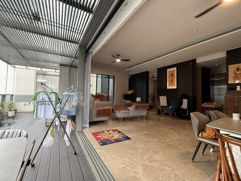 Step into a world of modern elegance as you enter this beautifully designed unit at Leedon Residence. The abundant natural light floods the open-concept living area, highlighting the exquisite marble flooring and the striking designer chandelier. Large sliding glass doors lead to a spacious balcony, where you can unwind amidst lush greenery and urban vistas, creating a serene escape right at home.
