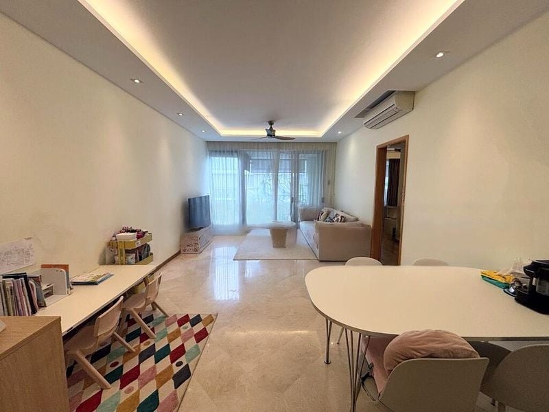 Step into a world of tranquility as you enter this beautifully maintained 3-bedroom unit at Sophia Residence. The abundant natural light floods the open-concept living area, highlighting the elegant marble-look tile flooring and modern pendant lighting. With a large balcony offering serene views of the landscaped garden, this space feels both inviting and expansive, perfect for relaxation or entertaining.