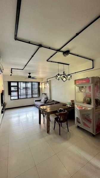 Step into a world of modern elegance as you enter this beautifully renovated 4-room HDB flat at Punggol Field. Bathed in abundant natural light, the open-plan living area boasts an arch-shaped TV feature wall and a designer globe chandelier that creates a warm, inviting ambiance. Large windows and glass sliding doors lead to a balcony, offering serene views of neighboring residential blocks.