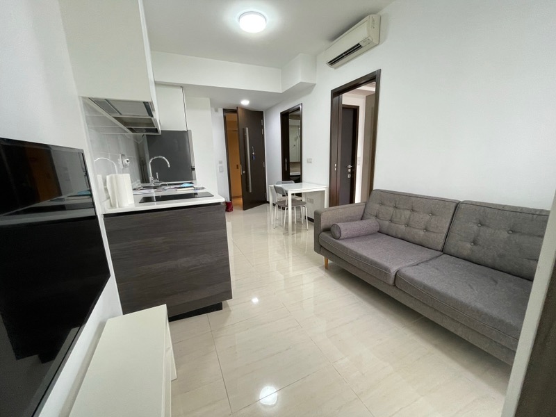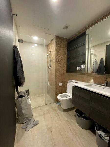 This well-maintained 2-bedroom unit features a thoughtfully designed layout, including a master suite with an en-suite bath and a stylish glass-partitioned kitchen. The bathroom boasts wood-textured wall tiles and a walk-in shower, while the living area is enhanced by dual air conditioning for year-round comfort. Built-in wardrobes and an integrated dressing table add to the unit's practicality and elegance.