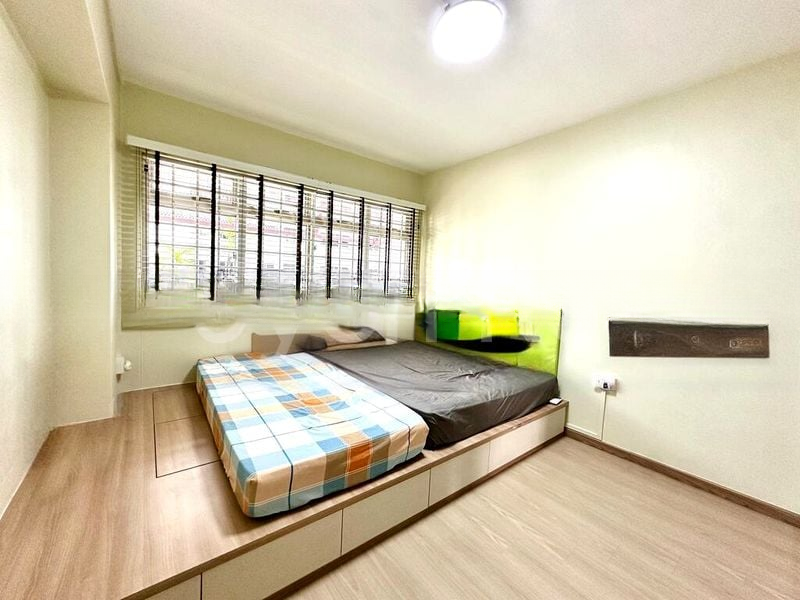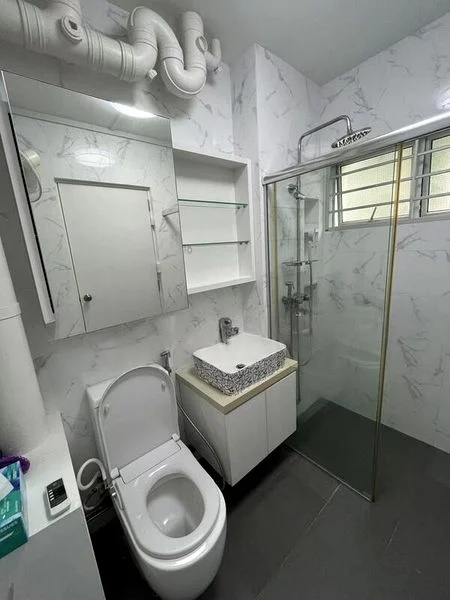Step into a beautifully renovated HDB flat that exudes modern minimalism, where natural light gently illuminates the space, enhancing the urban views outside. The thoughtful design features a sleek glass partition between the kitchen and dining area, creating an open yet intimate atmosphere. The ambiance is elevated by high-quality finishes, including a floating TV console and built-in cabinetry that seamlessly blend style and functionality.