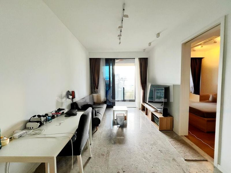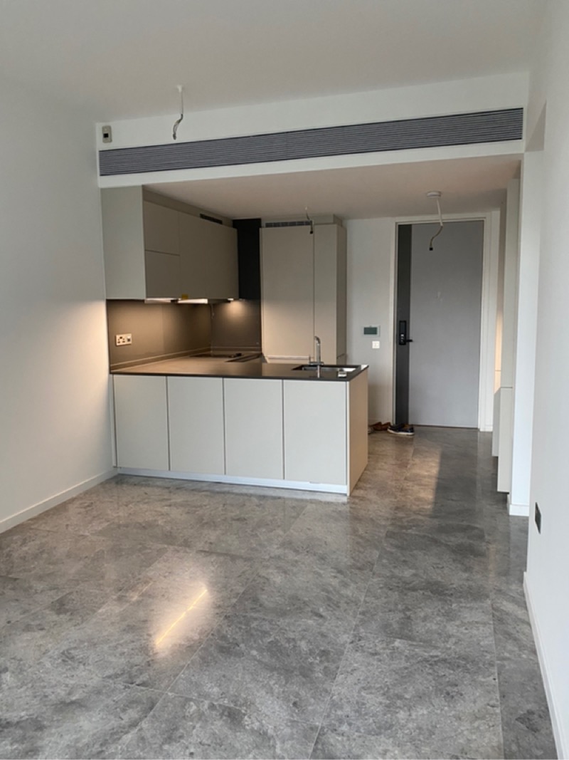 Step into this brand-new condominium at RIVIERE and be captivated by the abundant natural light that floods the open-concept living space. The elegant grey marble-look floor tiles and floor-to-ceiling windows create a seamless connection with the stunning city skyline, offering a vibrant backdrop to your daily life. The modern minimalist ambiance invites you to relax and unwind in style.