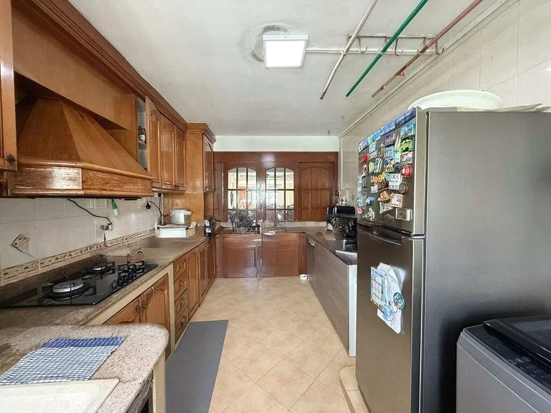 This thoughtfully designed unit features an L-shaped kitchen with dual-tone cabinetry, perfect for culinary enthusiasts. The elderly-friendly bathroom is equipped with safety grab bars and modern fixtures, ensuring comfort and accessibility for all. The bedrooms are fitted with built-in sliding wardrobes and ceiling fans, while air conditioning offers a cool retreat during warmer days.