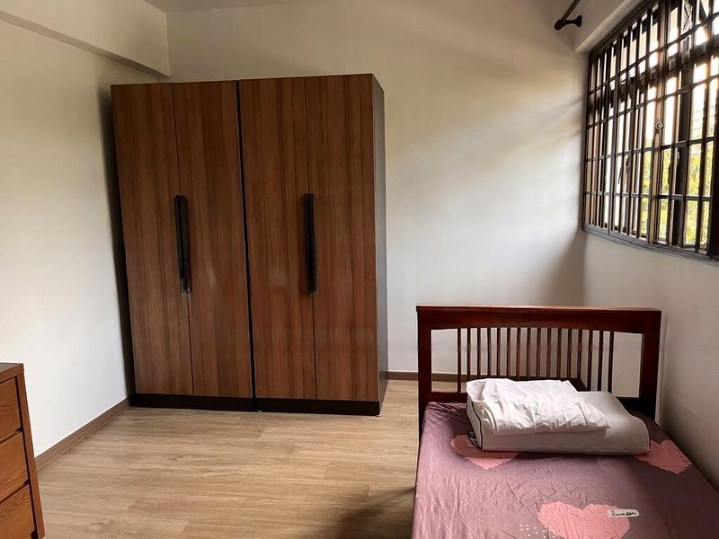Step into a well-maintained sanctuary where light wood laminate flooring greets you, enhancing the simple yet functional ambiance of this 2-bedroom HDB flat. The living area is bathed in natural light, complemented by bright overhead lighting and a built-in sideboard, creating a welcoming space that feels both spacious and cozy. Enjoy views of lush greenery from your windows, providing a serene backdrop to your everyday life.