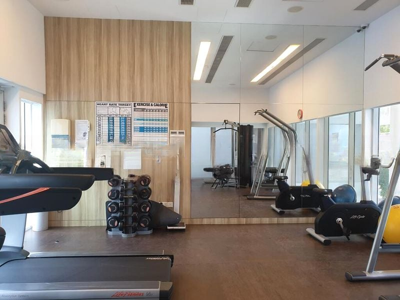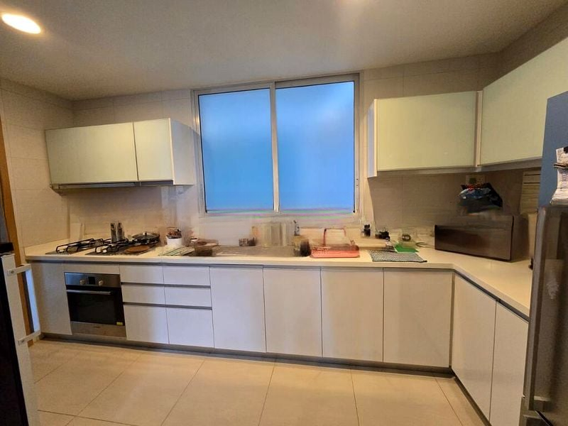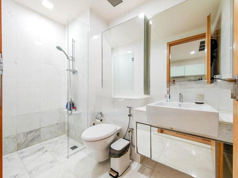 Step into a world of elegance as you enter this beautifully renovated unit at Tribeca. The abundant natural light floods through the bay window, illuminating the exquisite marble flooring and creating a warm, inviting ambiance. The modern minimalist design is accentuated by designer pendant lighting and a frosted glass partition, offering a perfect blend of style and functionality.