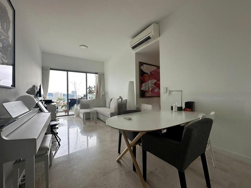 Step into a world of modern elegance as you enter this beautifully renovated unit at Alex Residences. The ambiance is enhanced by natural light filtering through large windows, illuminating the sleek wood-look floor tiles and minimalist finishes. Enjoy breathtaking views of the city skyline from your private balcony, creating a perfect backdrop for relaxation.