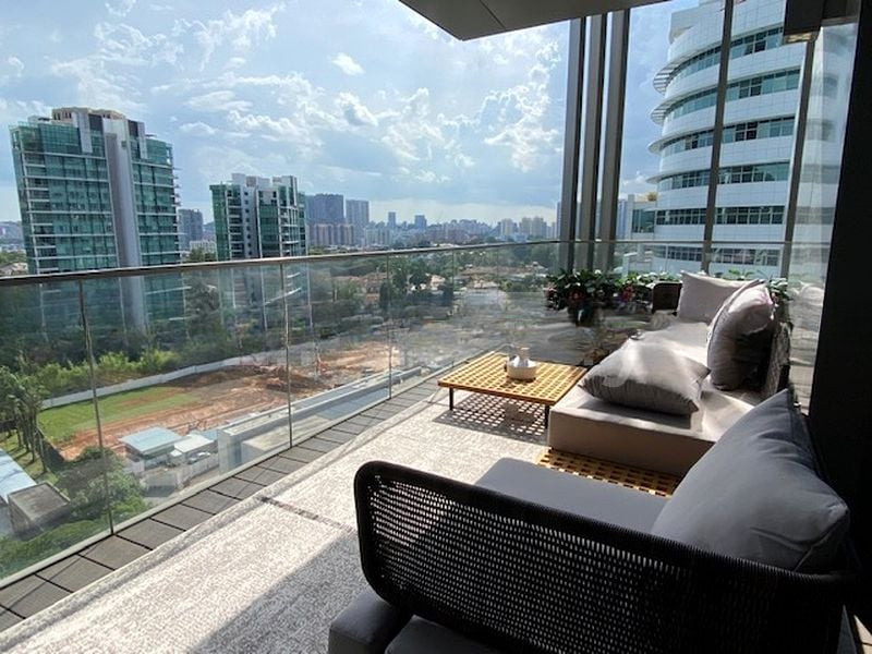 Step into a realm of modern elegance with this brand-new designer unit at 3 Orchard By-The-Park. The abundant natural light floods the open-concept living space, highlighting the striking double-volume ceiling and the exquisite city skyline views. The ambiance is elevated by designer light sculptures and a curved sofa that invites relaxation, while the outdoor timber decking beckons for al fresco gatherings.