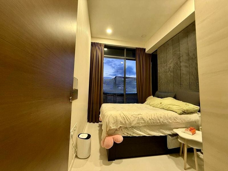Step into this modern minimalist 2-bedroom unit at Forte Suites and be captivated by the unblocked panoramic views of the city skyline. Bathed in natural light, the space features a textured feature wall in the main bedroom, enhancing the contemporary ambiance. The sliding mirror wardrobe adds a touch of elegance, while the balcony invites you to unwind amidst greenery and urban vistas.