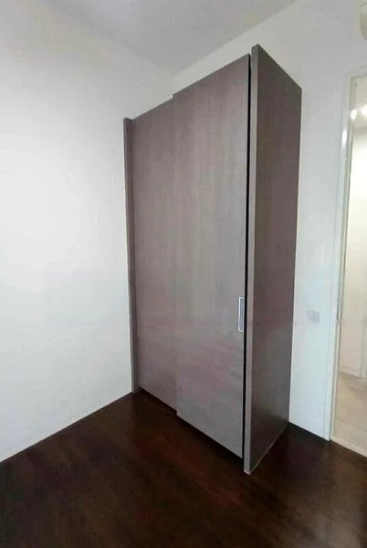 This meticulously renovated unit boasts four spacious bedrooms, including a master suite with direct balcony access and a built-in platform bed that maximizes storage. The glass-enclosed kitchen features sleek black cabinetry and white countertops, seamlessly blending style and functionality. Additional highlights include a walk-in wardrobe with frosted glass doors and a versatile bedroom/study with a built-in desk, ideal for work or play.
