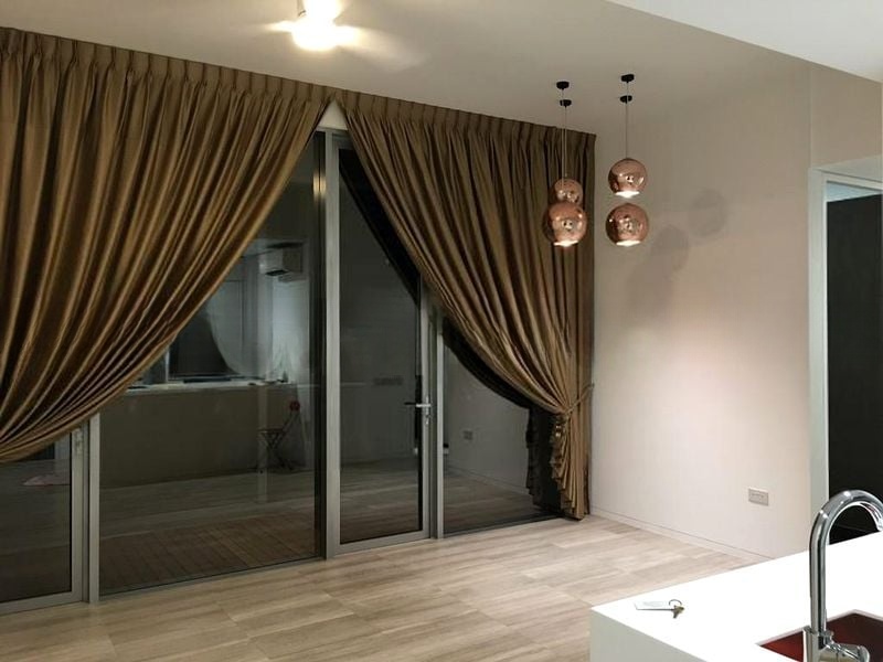 Step into a sanctuary of light and space at Seletar Park Residence, where abundant natural light floods the open-concept living and dining area, accentuated by a stunning white brick feature wall and cove lighting that creates a warm, inviting ambiance. The floor-to-ceiling glass sliding doors lead to a long balcony with wood decking, offering unobstructed views of the lap pool and lush greenery, making it the perfect spot for relaxation.