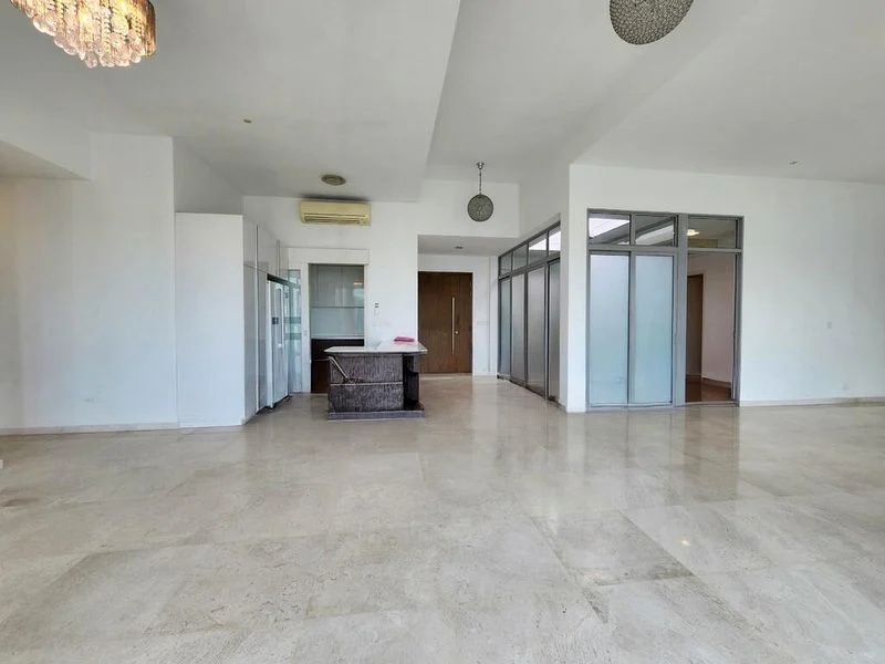 This well-maintained unit boasts standout features such as a honeycomb tile feature wall in the dining area, a decorative breeze block headboard in the master bedroom, and a stylish bar counter adorned with pendant lights. The layout is thoughtfully designed, with a versatile study/bedroom that includes a built-in desk and a comfortable sofa bed. The bathrooms are elegantly appointed with modern fixtures, including a glass shower partition and mirrored vanity cabinets.