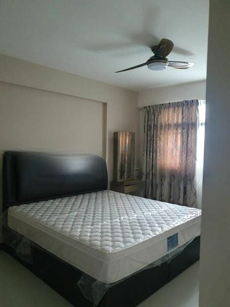 Step into this well-maintained 3-bedroom HDB flat and be greeted by a clean, functional ambiance that invites comfort. The modern two-tone kitchen cabinetry catches the eye, complemented by black countertops that enhance the space's contemporary feel. Natural light filters through, creating a warm atmosphere throughout the unit.