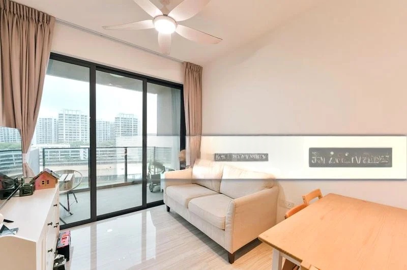 Step into a bright and airy sanctuary at PARC ESTA, where polished tile flooring leads you through an inviting living space bathed in natural light. The dual balconies offer serene views of lush greenery and neighboring residential buildings, creating a tranquil escape right at home.