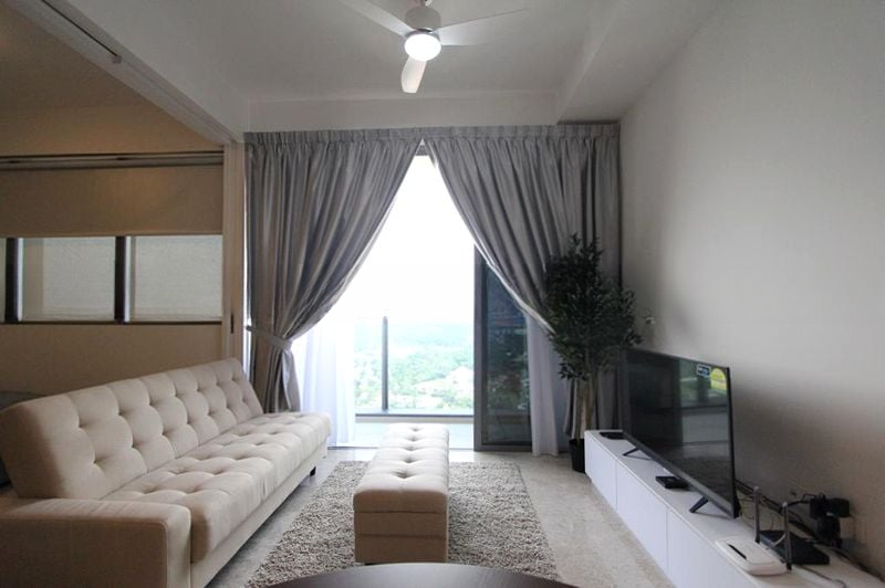 Step into a world of elegance as you enter this well-maintained 2-bedroom unit at Echelon. The abundant natural light floods the open-concept living area, accentuated by floor-to-ceiling windows that frame stunning city skyline and lush greenery views. The airy ambiance is enhanced by marble flooring and a stylish chandelier, making it the perfect space for relaxation and entertaining.