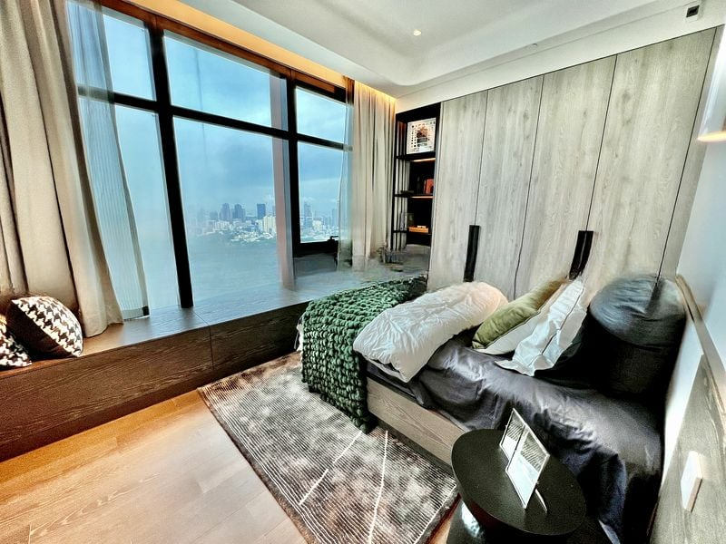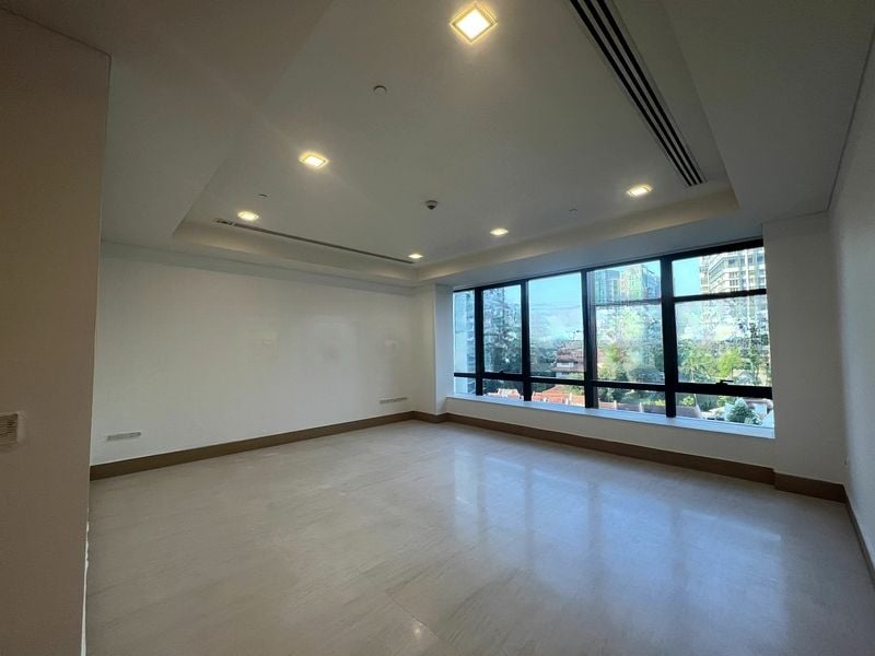 Step into a world of sophistication as you enter this brand-new designer unit at The Ritz-Carlton Residences. Bathed in abundant natural light, the space features floor-to-ceiling windows that frame breathtaking views of the city skyline. The luxurious ambiance is accentuated by high-end finishes, including a freestanding jacuzzi bathtub in the master bathroom, surrounded by exquisite book-matched marble walls and integrated shelf lighting that creates an inviting atmosphere.