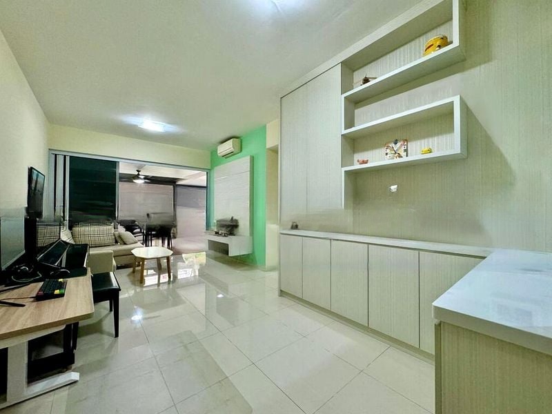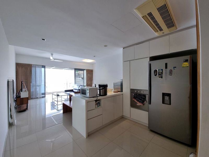 Step into a world of modern elegance as you enter this brand-new designer unit at Elliot at the East Coast. Bathed in abundant natural light, the open-concept living space features exquisite marble flooring and floor-to-ceiling windows that frame breathtaking views of lush greenery and beautifully landscaped gardens. The ambiance is a perfect blend of minimalist sophistication and comfort, inviting you to unwind in style.