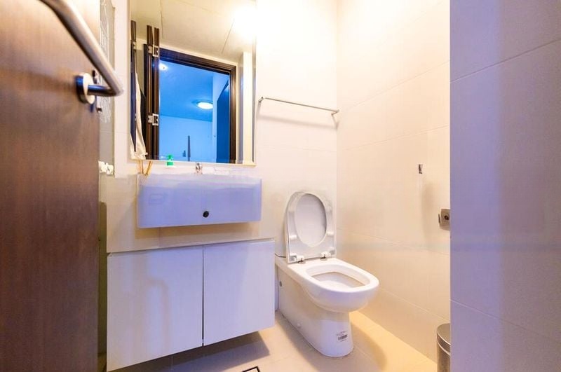 Step into this well-maintained 1-bedroom unit at SIGLAP V and be greeted by a serene ambiance, where moderate natural light dances across the open-concept living area. The balcony offers breathtaking views of the long lap pool, framed by glass balustrades, and a glimpse of the distant city skyline, creating a perfect backdrop for relaxation.
