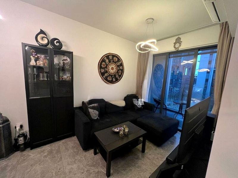 Step into a world of modern luxury as you enter this brand-new designer unit at THE M. Bathed in abundant natural light, the living room captivates with its marble-look TV feature wall and decorative wavy paneling, creating an inviting ambiance that feels both sophisticated and warm. The expansive windows frame breathtaking views of the city skyline and lush greenery, making every moment spent here a visual delight.