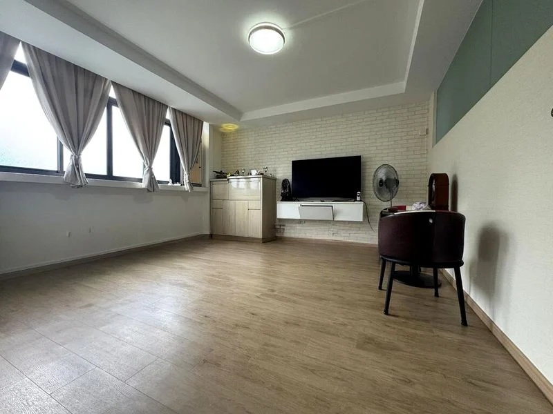 Step into this beautifully maintained 4-bedroom flat and be greeted by an abundance of natural light that fills the airy living space. The wood-look vinyl flooring and striking white brick feature wall create a warm and inviting ambiance, while large windows offer unblocked views of the neighborhood and playground, making it a perfect spot for relaxation and family gatherings.