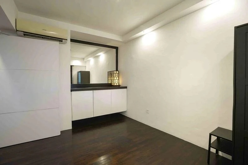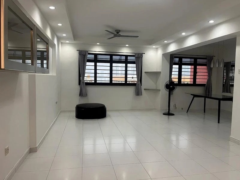 Step into a sanctuary of modern minimalist design at this beautifully renovated HDB flat. The moment you enter, you are greeted by an abundance of natural light cascading through large windows, illuminating the dark wood flooring and enhancing the sleek ambiance. The city skyline view serves as a stunning backdrop, creating a serene yet vibrant atmosphere that invites relaxation and inspiration.