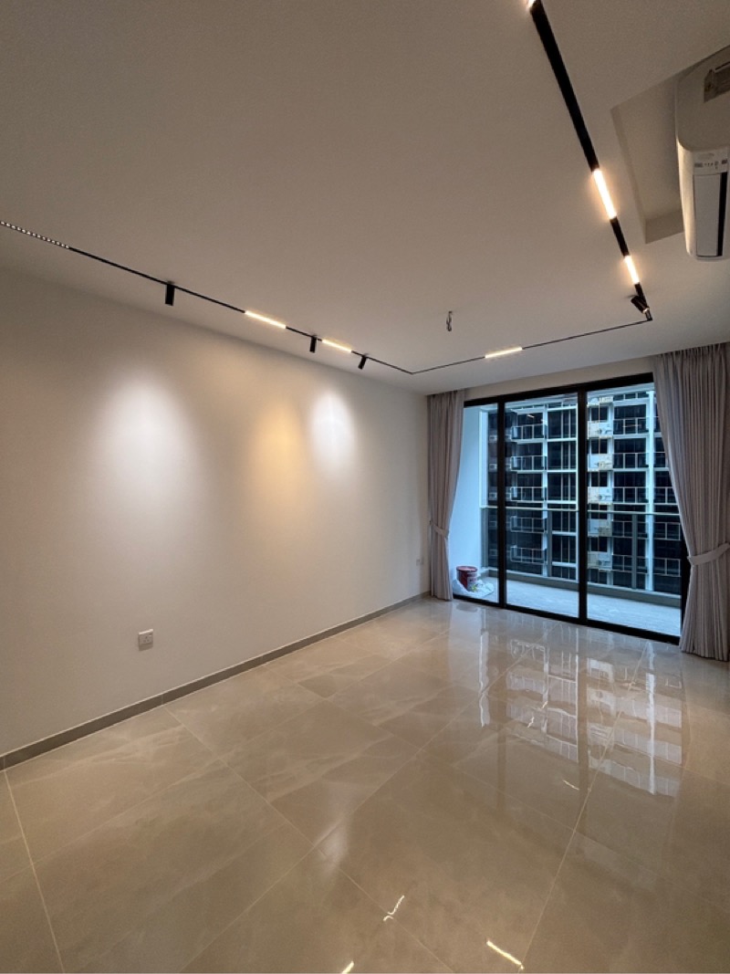Step into this brand-new 2-bedroom unit at PENROSE and be greeted by an abundance of natural light that fills the open living space. The large format glossy floor tiles reflect the sunlight, creating a bright and airy ambiance, while full-height sliding glass doors offer unobstructed views of the shimmering swimming pool and lush landscaped greenery beyond.