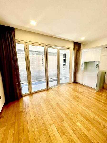 Step into a sanctuary of modern minimalism where abundant natural light floods the open-concept living and dining area, accentuated by floor-to-ceiling sliding glass doors that seamlessly connect to a spacious balcony. The stunning views of the city skyline and lush greenery create an inviting ambiance, perfect for relaxation or entertaining.
