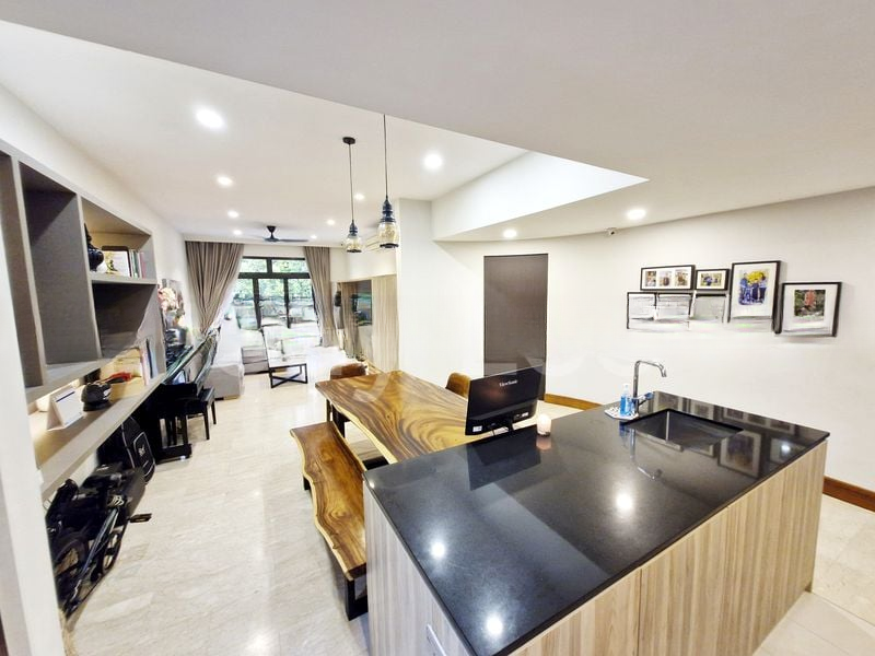 This well-maintained 3-bedroom unit features an efficient layout, including a master bedroom with en-suite, two common bedrooms, and a dedicated yard and utility space. The heart of the home is the U-shaped kitchen, equipped with white minimalist cabinetry, an induction hob, and a built-in oven, perfect for culinary enthusiasts. The living room boasts extensive built-in storage and a full-height TV console, while the custom wooden platform bed in the bedroom offers integrated storage solutions, maximizing space without compromising style.