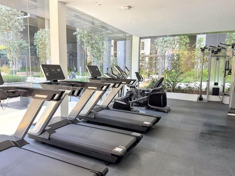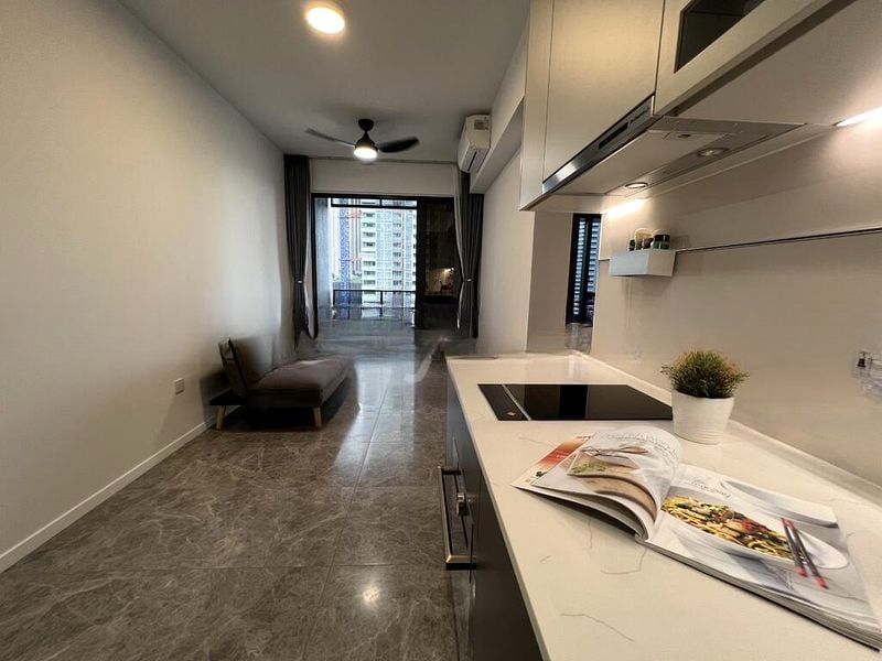 Step into a world of elegance and sophistication as you enter this brand-new condominium at THE M. Bathed in natural light, the open-concept living space features floor-to-ceiling windows that frame breathtaking views of the city skyline and lush greenery. The modern minimalist design is accentuated by marble-look floor tiles and white marble countertops, creating an ambiance that is both inviting and luxurious.