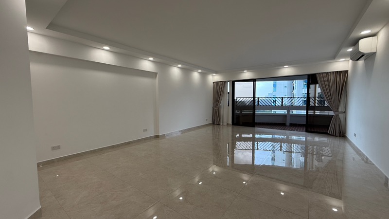Step into a world of elegance as you enter this beautifully renovated unit at Hawaii Tower. The abundant natural light floods through large windows, highlighting the polished tile flooring and creating a bright and airy ambiance. Floor-to-ceiling glossy built-in wardrobes and cove lighting enhance the modern aesthetic, while the views of lush greenery provide a serene backdrop.