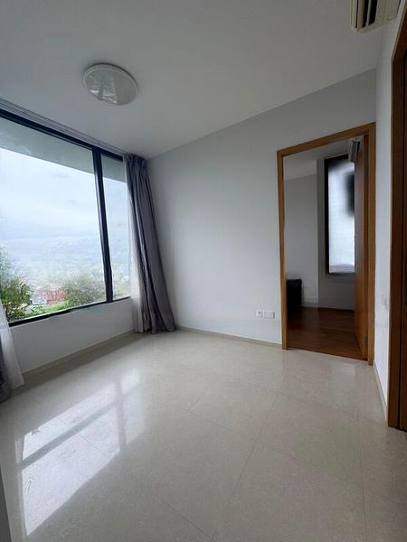 Step into a world of elegance as you enter this brand-new 2-bedroom unit at The Crest. The abundant natural light floods the space, highlighting the polished light-colored floor tiles and the stunning floor-to-ceiling windows that frame breathtaking views of the pool, greenery, and city skyline. The airy ambiance invites you to relax and unwind in your new home.