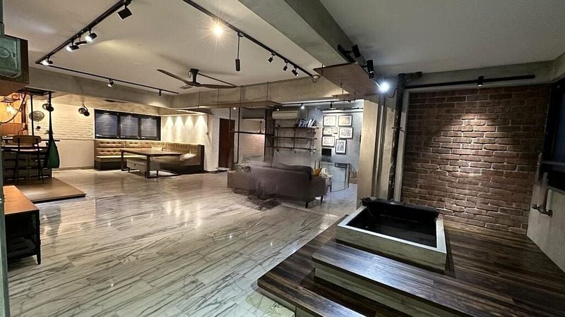 Step into this bright and airy 1-bedroom flat, where natural light dances across the spacious kitchen and dining area, accentuating the modern white cabinetry and sleek black appliances. The ambiance is inviting, with a raised platform bed in the bedroom that offers a cozy retreat, complemented by a large full-height built-in wardrobe and tasteful grey walls.