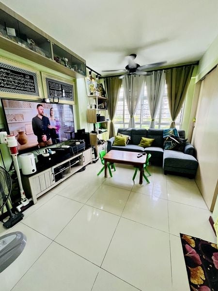 Step into this well-maintained 1-bedroom flat and be greeted by a lively ambiance, accentuated by the striking lime green kitchen cabinetry that instantly draws your eye. Natural light filters through the windows, illuminating the functional living space, while the urban view of neighboring HDB blocks and rooftop greenery adds a refreshing touch to your everyday living.