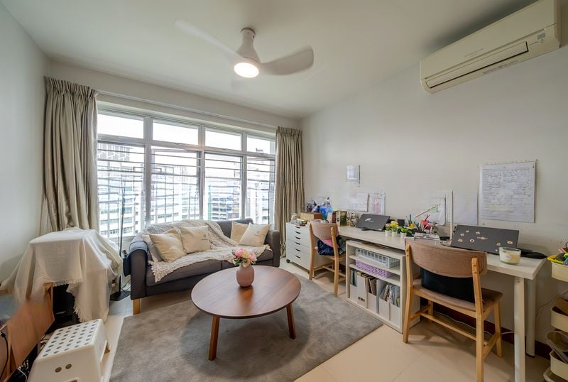 Step into a bright and airy sanctuary at 432B Yishun Ave 1, where abundant natural light floods through large windows, creating an inviting ambiance. The open-concept living room, adorned with ceiling fans and elegant furnishings, seamlessly integrates a study area, perfect for work or leisure. Enjoy urban views from the comfort of your home, complemented by a dedicated piano nook that adds a touch of charm.