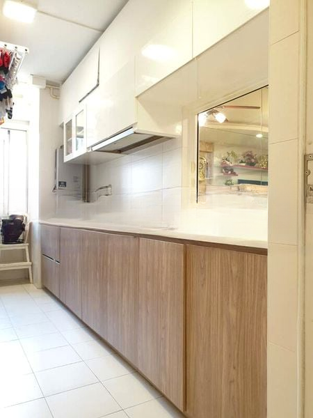 Step into a world of elegance and tranquility as you enter this beautifully renovated HDB flat. Bathed in natural light, the living room boasts a striking chandelier, patterned wallpaper, and a built-in aquarium that adds a unique touch. The unblocked views of the park and lake create a serene ambiance, making it a perfect retreat from the bustling city.
