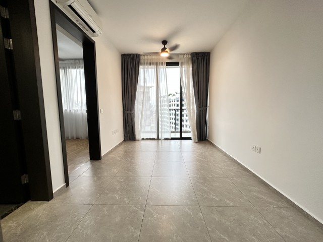 This efficient 1-bedroom plus study layout boasts standout features including a well-equipped kitchen with an integrated oven and induction hob, a luxurious rain shower in the bathroom, and a cozy study nook perfect for remote work. The master bedroom, adorned with wood-look laminate flooring and floor-to-ceiling curtains, offers a tranquil retreat.
