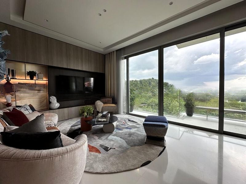 Step into a world of modern luxury as you enter this brand-new designer unit at The Residences at W Singapore Sentosa Cove. Bathed in abundant natural light, the open-concept living and dining areas feature floor-to-ceiling windows that frame breathtaking views of lush greenery and the serene park. The exquisite marble flooring and a striking designer chandelier create an ambiance that is both inviting and sophisticated.