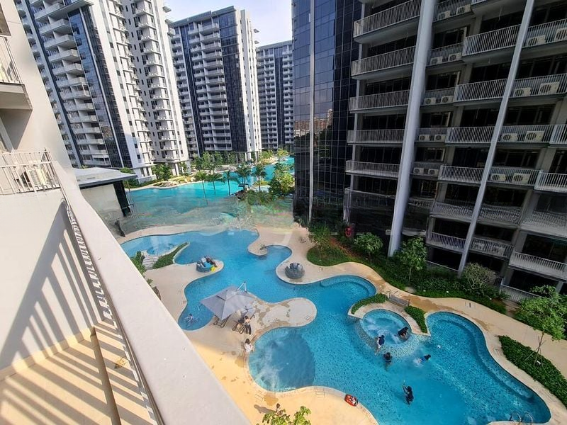 Step into a world of elegance as you enter this beautifully renovated unit at Riverfront Residences. The abundant natural light floods through the floor-to-ceiling windows, illuminating the modern minimalist design. With high ceilings and a loft mezzanine, the spacious living area offers a seamless flow to the balcony, where you can enjoy serene views of greenery and the cityscape.