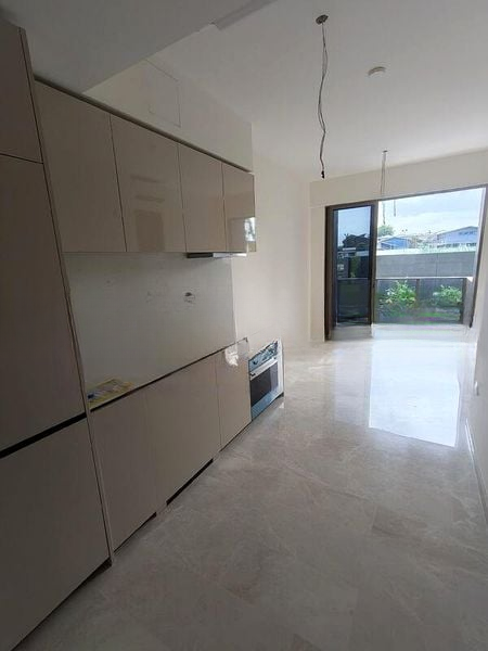Step into a world of elegance as you enter this brand-new 2-bedroom unit at FORETT@BUKIT TIMAH. The polished marble-look floor tiles in the living area reflect abundant natural light, creating a bright and airy ambiance. Floor-to-ceiling windows frame views of the urban landscape, inviting the outside in and enhancing the spacious feel of the home.