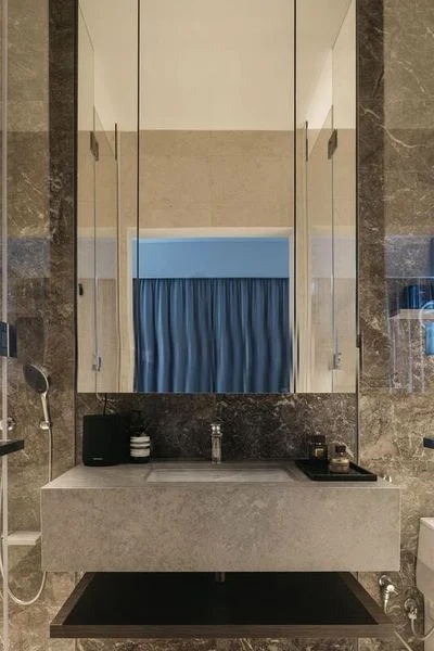 This well-maintained unit boasts standout features including a spacious living room with balcony access, a dedicated study area with built-in desk, and a kitchen equipped with high-end appliances and light wood-grain cabinetry. The master bedroom offers a serene retreat with glossy built-in wardrobes and large windows, while the bathrooms are adorned with luxurious finishes like rain showers and vessel sinks, ensuring a spa-like experience.