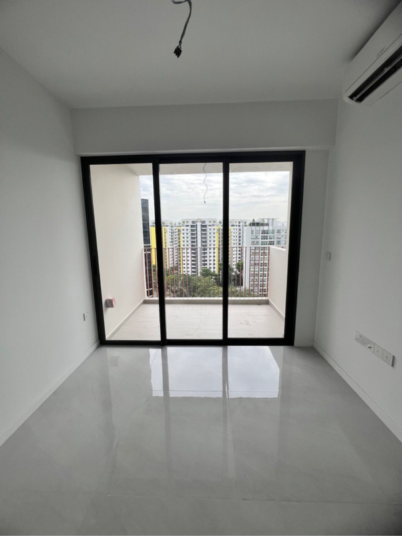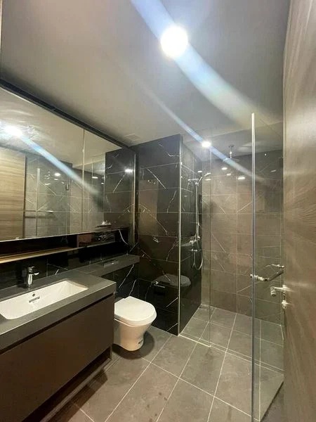 Step into a world of modern elegance as you enter this brand-new unit at Riverfront Residences. Bathed in abundant natural light, the polished tile flooring and cove lighting create a serene ambiance, while sliding glass doors lead you to a private balcony with breathtaking views of the pool and city skyline.