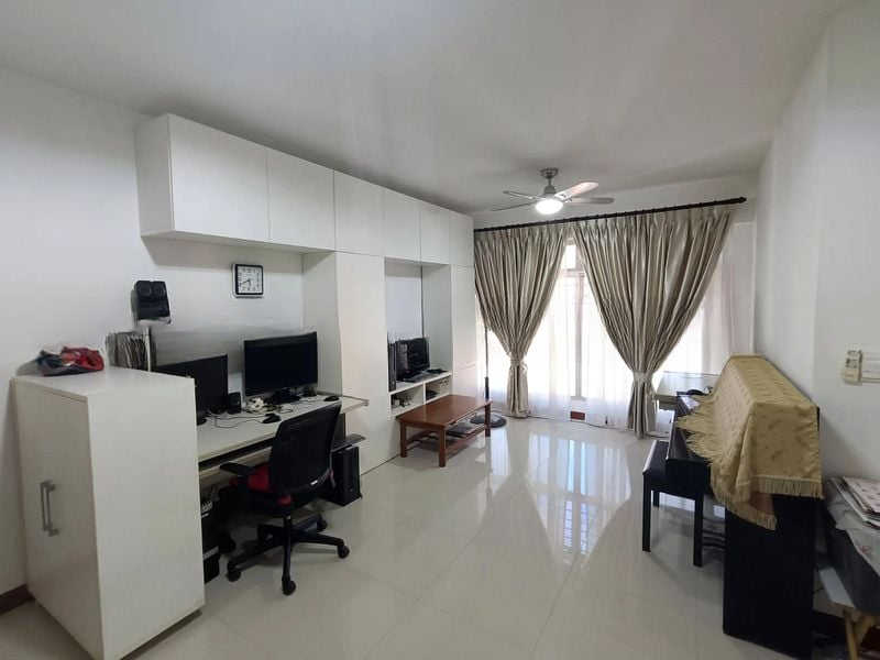 Step into this well-maintained 3-bedroom flat at 215B Compassvale Drive, where you are greeted by an inviting ambiance and an urban view that fills the space with a sense of vibrancy. The living room boasts large format floor tiles, complemented by built-in wall cabinets and a piano, creating a perfect blend of functionality and style. Natural light gently filters through, enhancing the warmth of the fully-furnished interiors.