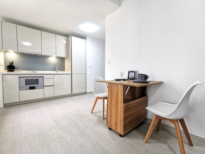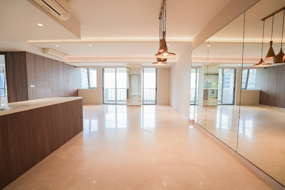 Step into a world of modern elegance at V ON SHENTON, where the open concept living area greets you with a striking concrete-effect feature wall and ambient track lighting. The large windows invite natural light, framing breathtaking views of the sea and the bustling cityscape, creating an inviting atmosphere that feels both spacious and intimate.