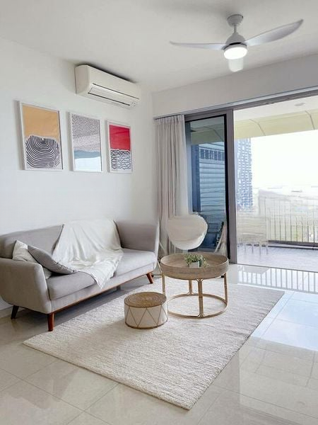 Step into a world of modern elegance at V ON SHENTON, where abundant natural light floods the spacious living area, accentuating the polished tile flooring and designer finishes. The floor-to-ceiling windows offer breathtaking views of the city skyline and infinity pool, creating an inviting ambiance that feels both luxurious and serene.