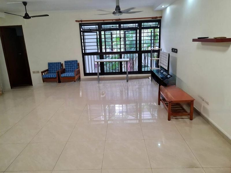 Step into a haven of warmth and sophistication at this beautifully renovated HDB flat. The inviting living room features exquisite herringbone wood flooring and a striking TV feature wall adorned with wooden slat panels. Natural light may be limited, but the integrated LED strip lighting and circular backlight create a cozy ambiance that envelops you as you enter.
