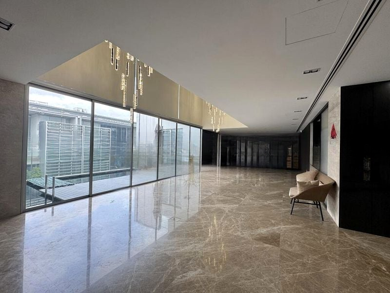 Step into a world of modern elegance at Nassim Park Residences, where abundant natural light floods the open-concept living space, accentuating the polished marble flooring and the striking double-volume ceiling. The designer pendant chandeliers add a touch of sophistication, while floor-to-ceiling glass windows frame picturesque views of lush greenery and neighboring residences, creating a serene ambiance.