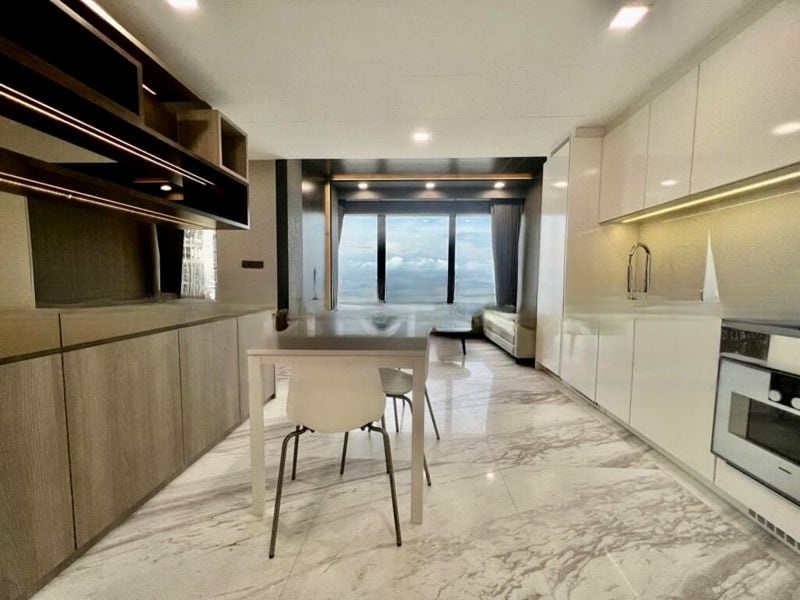Step into a world of modern luxury as you enter this brand-new unit at Wallich Residence. Bathed in abundant natural light, the open-concept living space features floor-to-ceiling windows that frame breathtaking views of the city skyline, sea, and lush greenery. The designer finishes, including marble-topped kitchen island and custom shelving, create an ambiance that is both sophisticated and inviting.
