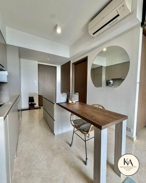 Step into a sanctuary of modern minimalist design, where abundant natural light floods the space, accentuating the sleek finishes and inviting ambiance. The open-concept living area seamlessly connects to a large balcony adorned with a vertical garden, offering tranquil views of lush greenery that create a serene escape from the city.