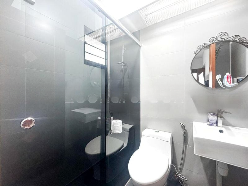 Step into a beautifully renovated HDB flat that exudes modern industrial charm. The moment you enter, you are greeted by an inviting ambiance, highlighted by dark wood flooring and a striking stone-patterned feature wall. Natural light filters through the large windows, enhancing the urban views and creating a warm, welcoming atmosphere.