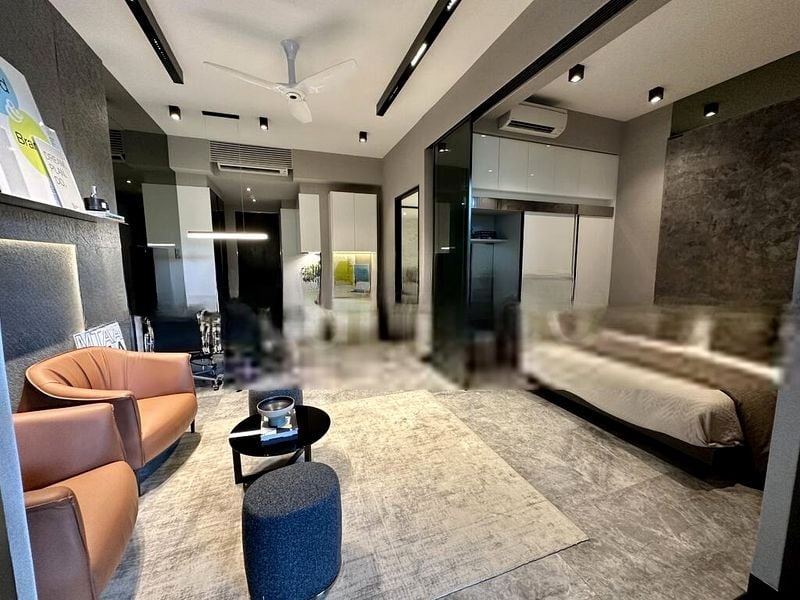 Step into a world of modern luxury as you enter this brand-new 1-bedroom unit at Midtown Bay. Bathed in abundant natural light, the open-plan living area features floor-to-ceiling glass windows that frame breathtaking views of the Marina Bay Sands and the vibrant Singapore city skyline. The sleek stone-textured feature walls and marble-look flooring create an ambiance of sophistication, while the outdoor balcony invites you to unwind with panoramic vistas.