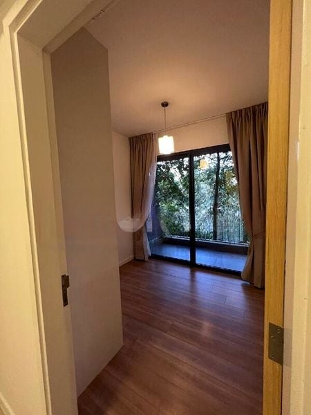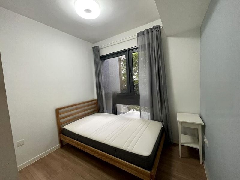 Step into this beautifully maintained 3-bedroom unit at The Lakefront Residences, where modern minimalist design meets comfort. The living room welcomes you with its pendant lighting and patterned wallpaper, complemented by a refreshing green area rug. Enjoy the serene pool view through full-height windows, allowing natural light to fill the space.